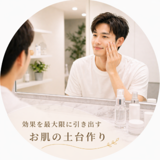 だからこそこれを機に、ヒゲをなくしてよりカッコよく、同年代より一歩抜けた若々しいツルツル肌を作っていただきたく、こだわりの製薬会社開発の基礎化粧品をご用意し丁寧にスキンケアをお伝えしております。