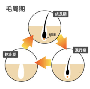 ・脱毛に回数が必要なのは毛が生えるサイクルである「毛周期」がとても関係している