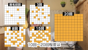 また、脚や腕など、ツルツルまでとは言わないが薄くしたいというのであれば8~12回くらいでもいいかと思います。
