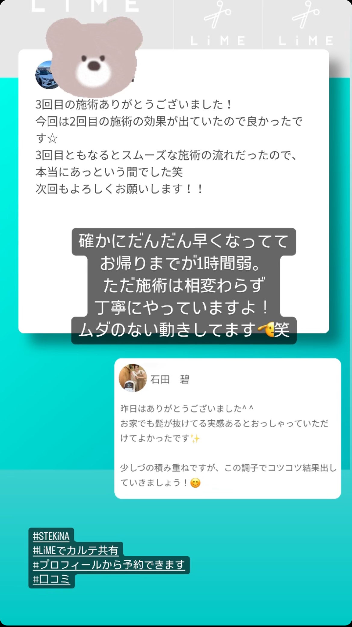 効果も当然ですが、接客の丁寧さも自信あり◎