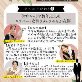 脱毛士歴10年以上、施術実績のべ1万人、フェイシャル実績2000人以上のオーナーが生み出したCHILL独自の施術メソッド